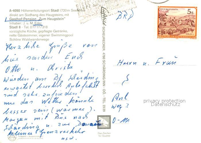 73522187 alte Postkarte Stadl Mur Gasthof Pension Zum Haugstein Fliegeraufnahme postalisch gelaufen Erhaltung siehe scans [WerneD78] KatCode: 11390226061430