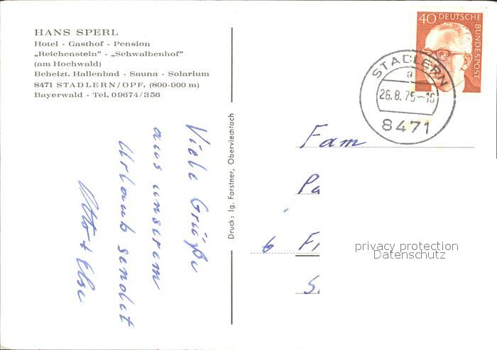 72493726 alte Postkarte Stadlern Oberpfalz Hotel Gasthof Pension Reichenstein Schwalbenhof am Hochwald postalisch gelaufen Erhaltung siehe scans KatCode: 11110009376167