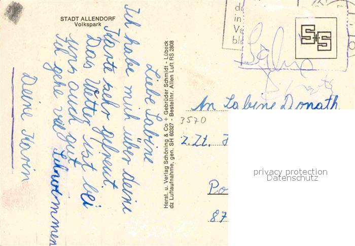 72901583 alte Postkarte Stadtallendorf Volkspark Fliegeraufnahme postalisch gelaufen Erhaltung siehe scans [FriedD77] KatCode: 11110006534018