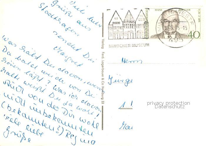 73839433 alte Postkarte Stadthagen Kirche Marktplatz Stadtgarten Cafe Heimatmuseum Marktplatz postalisch gelaufen Erhaltung siehe scans [FriedD77] KatCode: 11110003257035