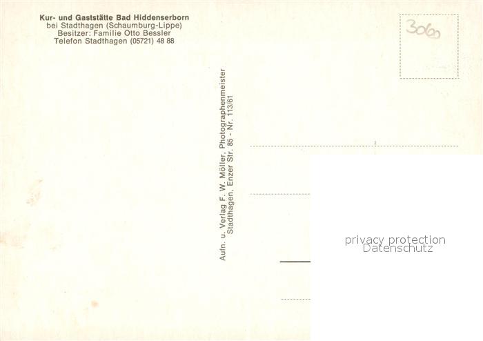 73047496 Stadthagen Kur und Gaststaette Bad Hiddenserborn postalisch nicht gelaufen Erhaltung siehe scans [WerneD78] KatCode: 11110003257035