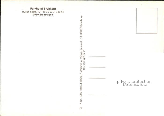 72548869 Stadthagen Parkhotel Breitkopf postalisch nicht gelaufen Erhaltung siehe scans [LiesaD40 kv021box] KatCode: 11110003257035