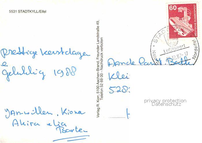 72864922 alte Postkarte Stadtkyll postalisch gelaufen Erhaltung siehe scans [NatalD47] KatCode: 11110007233240