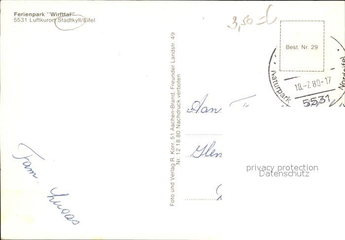 72234294 alte Postkarte Stadtkyll Ferienpark Wirftal postalisch gelaufen Erhaltung siehe scans KatCode: 11110007233240