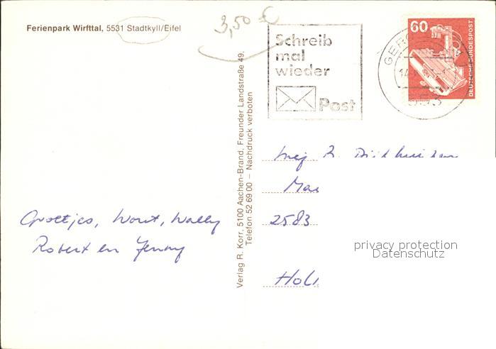 72234296 alte Postkarte Stadtkyll Ferienpark Wirftal postalisch gelaufen Erhaltung siehe scans KatCode: 11110007233240