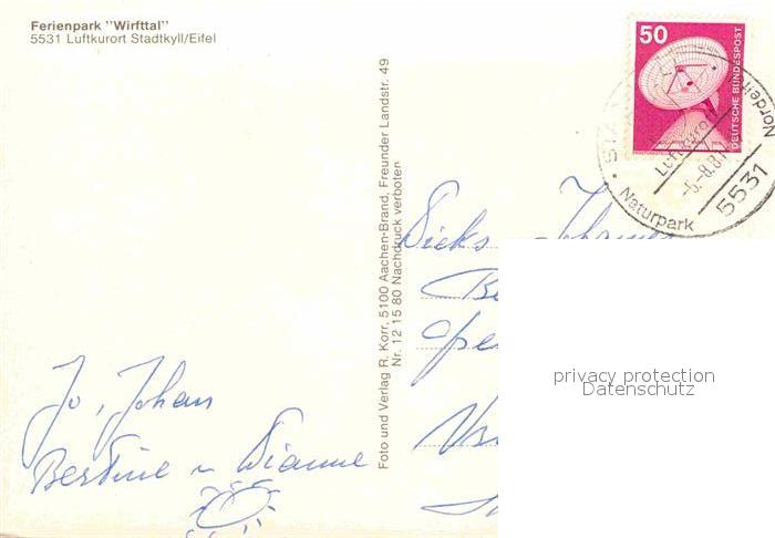 72736941 alte Postkarte Stadtkyll Ferienpark Wirfttal postalisch gelaufen Erhaltung siehe scans [FriedD77] KatCode: 11110007233240