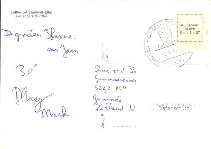72394880 alte Postkarte Stadtkyll Ferienpark Wirfttal Badesee postalisch gelaufen Erhaltung siehe scans KatCode: 11110007233240