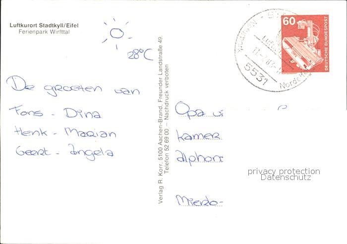 72221999 alte Postkarte Stadtkyll Ferienpark Wirttal postalisch gelaufen Erhaltung siehe scans KatCode: 11110007233240
