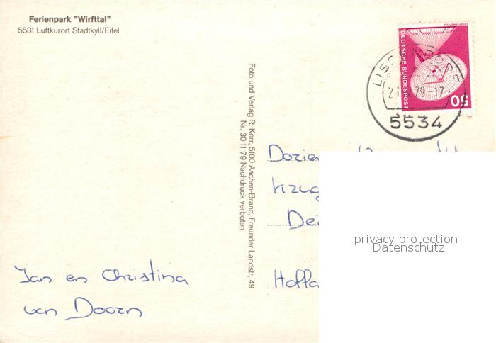 72930865 alte Postkarte Stadtkyll Ferienpartk Wifttal postalisch gelaufen Erhaltung siehe scans [LiesaD40] KatCode: 11110007233240