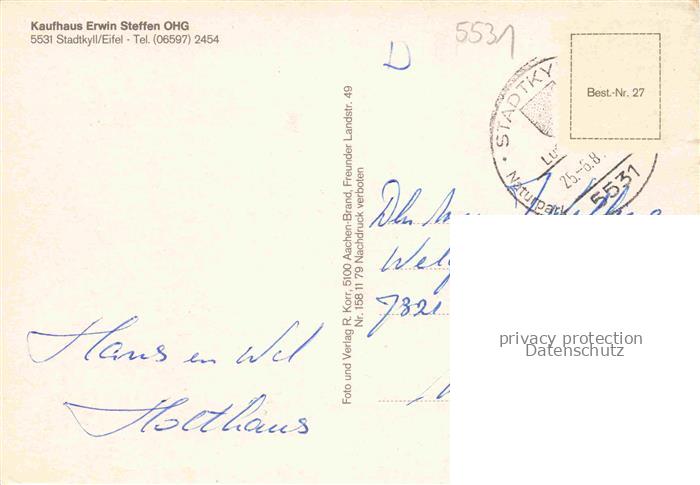 74055208 alte Postkarte Stadtkyll Fliegeraufnahme postalisch gelaufen Erhaltung siehe scans [WerneD78] KatCode: 11110007233240