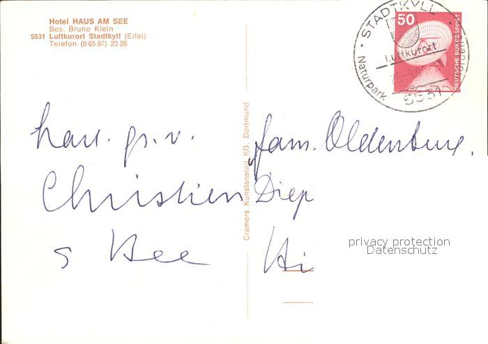 72272980 alte Postkarte Stadtkyll Hotel Haus am See postalisch gelaufen Erhaltung siehe scans KatCode: 11110007233240