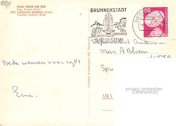 72865123 alte Postkarte Stadtkyll Hotel Haus am See postalisch gelaufen Erhaltung siehe scans [LiesaD40] KatCode: 11110007233240