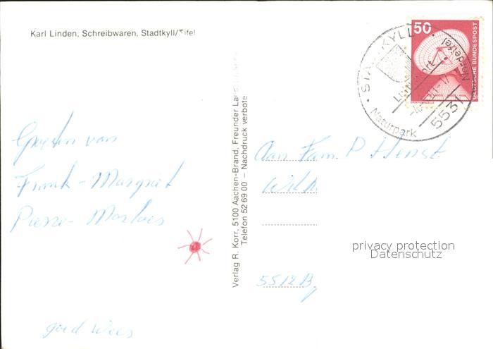 72394882 alte Postkarte Stadtkyll Ortspartie am Bach Siedlung Landschaftspanorama postalisch gelaufen Erhaltung siehe scans KatCode: 11110007233240