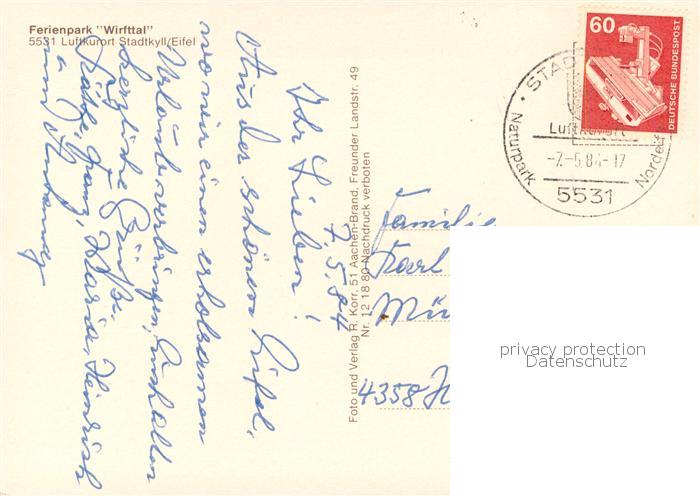 73780360 alte Postkarte Stadtkyll Panorama Ferienpark Wirfttal Campingplatz Bungalows Naturpark Nordeifel postalisch gelaufen Erhaltung siehe scans [FriedD77] KatCode: 11110007233240