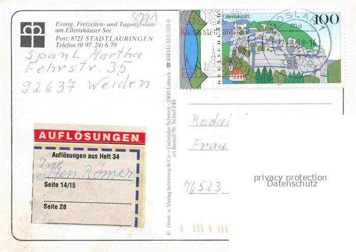 74054428 alte Postkarte Stadtlauringen Unterfranken Haus der Begegnung Gastraeume Brunnen postalisch gelaufen Erhaltung siehe scans [WerneD78] KatCode: 11110009678181