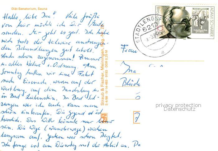 73750911 alte Postkarte Stadtlengsfeld Diaetsanatorium Details postalisch gelaufen Erhaltung siehe scans [WerneD78] KatCode: 11110016063072