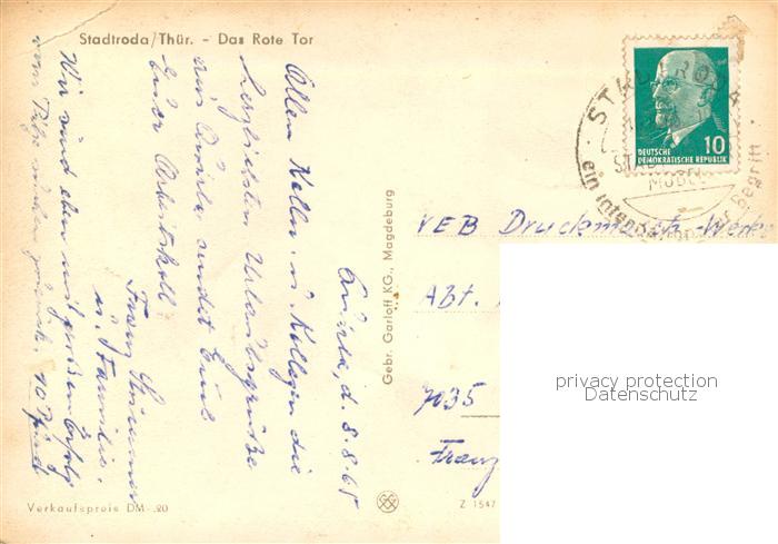 73750957 alte Postkarte Stadtroda Das Rote Tor postalisch gelaufen Erhaltung siehe scans [WerneD78] KatCode: 11110016074094