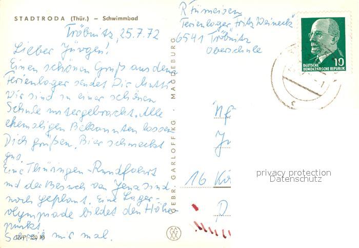 73544125 alte Postkarte Stadtroda Schwimmbad Freibad postalisch gelaufen Erhaltung siehe scans [FriedD77] KatCode: 11110016074094
