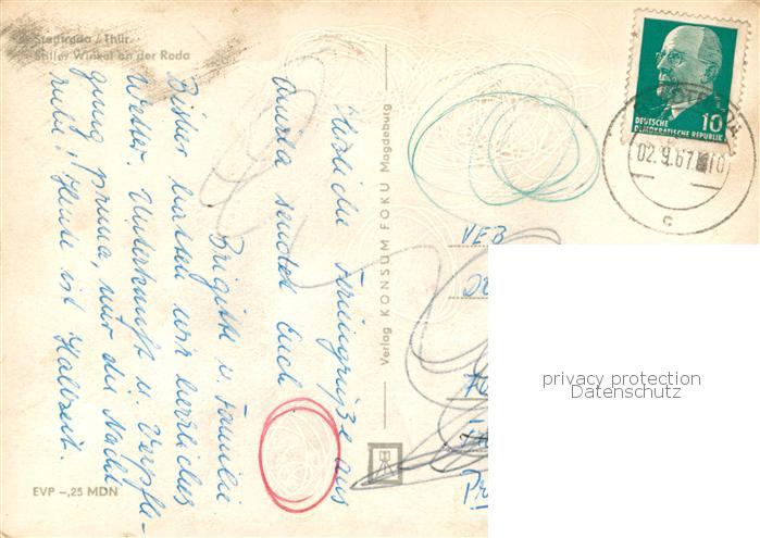 73750956 alte Postkarte Stadtroda Stiller Winkel an der Roda postalisch gelaufen Erhaltung siehe scans [WerneD78] KatCode: 11110016074094