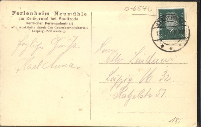 41449299 Stadtroda Thueringen Ferienheim Neumuehle im Zeitzgrund postalisch gelaufen Alte Ansichtskarte Postkarte alte Postkarte Bert Katcode 11110016074094