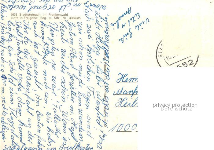 73637818 alte Postkarte Stadtsteinach Frankenwald Fliegeraufnahme postalisch gelaufen Erhaltung siehe scans [FriedD77] KatCode: 11110009477156