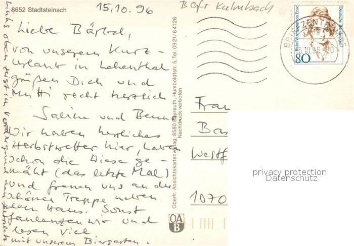 73671080 alte Postkarte Stadtsteinach Panorama Drachenflieger Gasthaus Schwimmbad postalisch gelaufen Erhaltung siehe scans [WerneD78] KatCode: 11110009477156