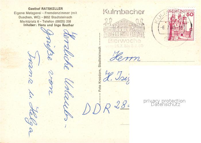 73045877 alte Postkarte Stadtsteinach Ratskeller Marktplatz Ruine Nordeck Gaststube Nebenzimmer postalisch gelaufen Erhaltung siehe scans [WerneD78] KatCode: 11110009477156