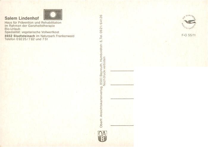 73941252 Stadtsteinach Salem Lindenhof Hallenbad Restaurant Reithalle Naturpark Frankenwald postalisch nicht gelaufen Erhaltung siehe scans [FriedD77] KatCode: 11110009477156