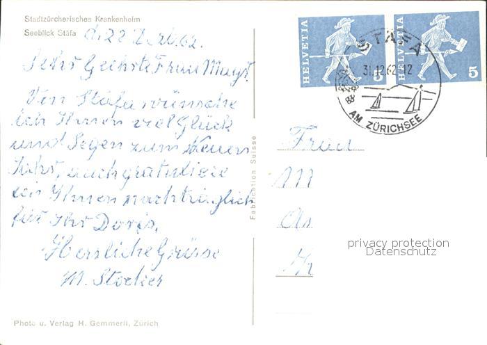 11641301 alte Postkarte Staefa Stadtzuercherisches Krankenheim Seeblick Zuerchersee postalisch gelaufen Erhaltung siehe scans KatCode: 11470260895374