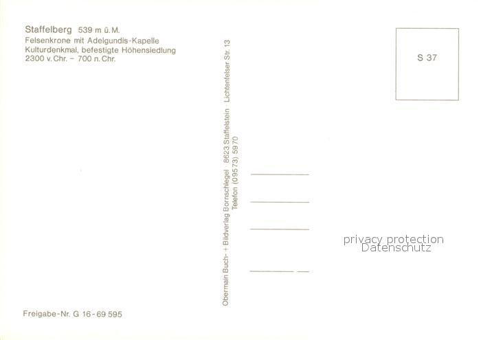 73615080 Staffelberg Felsenkrone Adelgundis-Kapelle Fliegeraufnahme postalisch nicht gelaufen Erhaltung siehe scans [PaolaD17] KatCode: 11110009478165