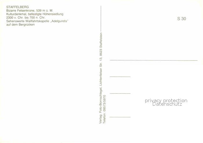 72721066 Staffelberg Felsenkrone Kulturdenkmal befestigte Hoehensiedlung Wallfahrtskapelle Adelgundis postalisch nicht gelaufen Erhaltung siehe scans [FriedD77] KatCode: 11110009478165
