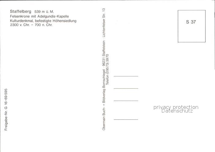 72402077 Staffelberg Felsenkrone mit Adelgundis Kapelle postalisch nicht gelaufen Erhaltung siehe scans KatCode: 11110009478165