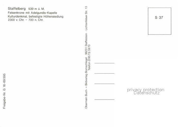 72880098 Staffelberg Felsenkrone mit Adelgundis Kapelle Kulturdenkmal Hoehensiedlung Fliegeraufnahme postalisch nicht gelaufen Erhaltung siehe scans [FriedD77] KatCode: 11110009478165