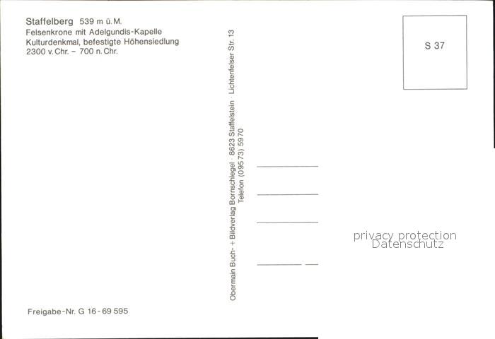 72515729 Staffelberg Felsenkrone mit Kapelle Fliegeraufnahme postalisch nicht gelaufen Erhaltung siehe scans KatCode: 11110009478165