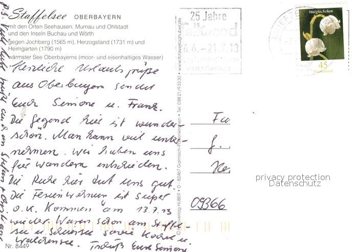 72944007 alte Postkarte Staffelsee Fliegeraufnahme Seehausen Murnau Ohlstadt Jochberg Heimgarten postalisch gelaufen Erhaltung siehe scans [KathaD81] KatCode: 11110009180124