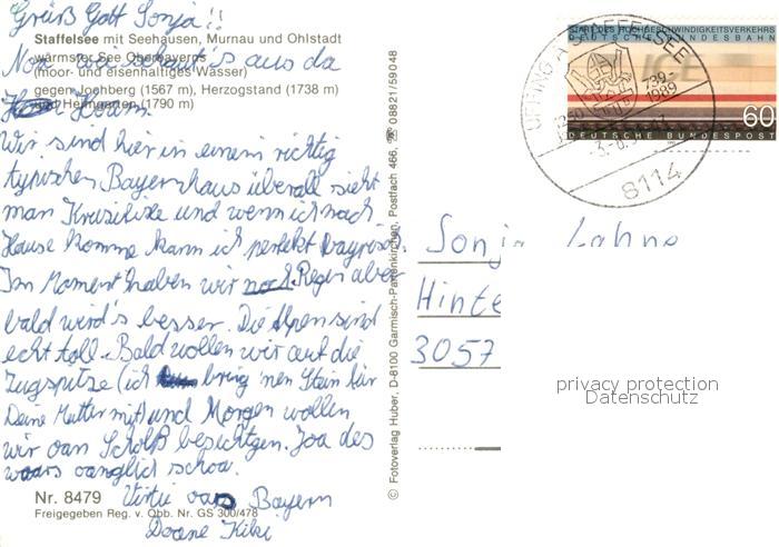 73116009 alte Postkarte Staffelsee Fliegeraufnahme Seehausen Murnau Ohlstadt postalisch gelaufen Erhaltung siehe scans [KathaD81] KatCode: 11110009180124