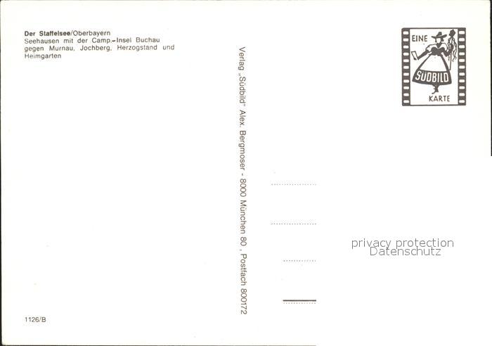 72059033 Staffelsee Seehausen Camp Insel Buchau Murnau Jochberg Herzogstand Heimgarten postalisch nicht gelaufen Erhaltung siehe scans KatCode: 11110009180124