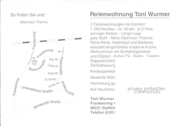 Staffelstein Bad Ferienwohnung Toni Wurmer postalisch nicht gelaufen Erhaltung siehe scans