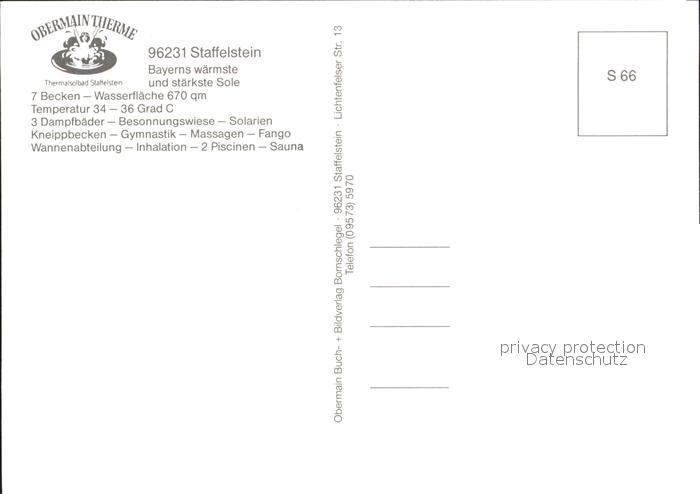 72368308 Staffelstein Bad Obermaintherme Schwimmbad postalisch nicht gelaufen Erhaltung siehe scans KatCode: 11110009478165