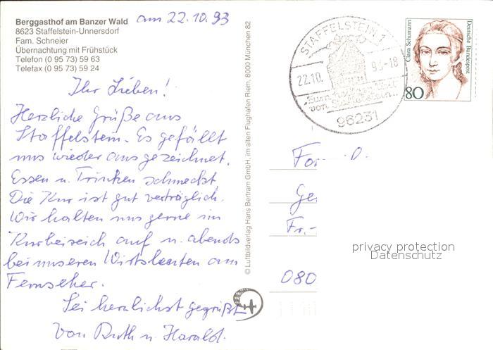 72373528 alte Postkarte Staffelstein Bad Unnersdorf Berggasthof Banzer Wald Schloss Banz postalisch gelaufen Erhaltung siehe scans KatCode: 11110009478165