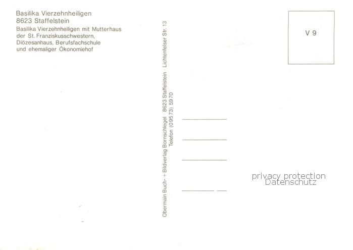 73786005 Staffelstein Fliegeraufnahme Basilika Vierzehnheiligen postalisch nicht gelaufen Erhaltung siehe scans [LiesaD40] KatCode: 11110009478165