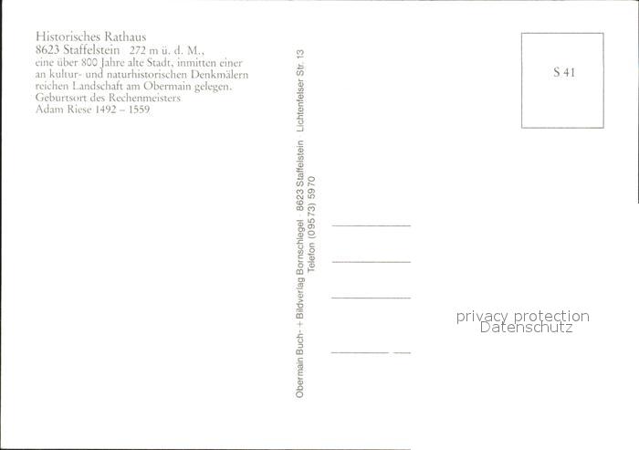 72376076 Staffelstein Historisches Rathaus postalisch nicht gelaufen Erhaltung siehe scans KatCode: 11110009478165