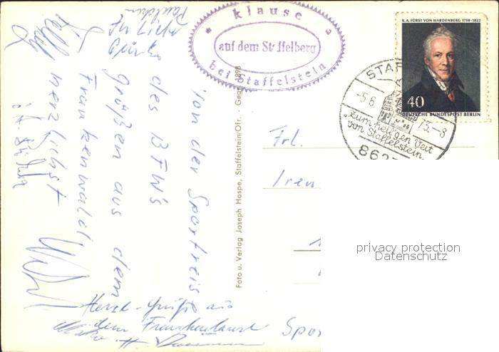 72261966 alte Postkarte Staffelstein Maintal Schloss Vierzehnheiligen Schwabthal Rathaus Stadtturm Schule Staffelberg postalisch gelaufen Erhaltung siehe scans KatCode: 11110009478165