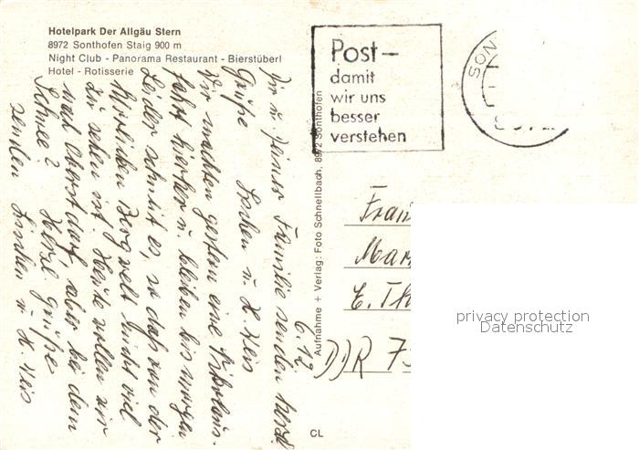 73652913 alte Postkarte Staig Sonthofen Hotelpark Der Allgaeu Stern Restaurant Bar Alpenpanorama postalisch gelaufen Erhaltung siehe scans [FriedD77] KatCode: 11110009780139
