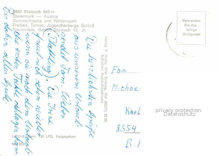 12603944 alte Postkarte Stainach Fliegeraufnahme Schloss Trautenfels postalisch gelaufen Erhaltung siehe scans [LiesaD40] KatCode: 11390222061244