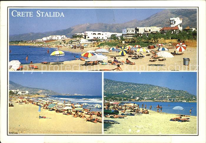 old postcard Stalida Stalis Strandpartien postalisch gelaufen Erhaltung siehe scans