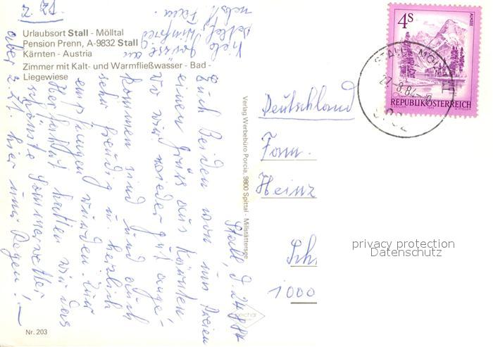 72984606 alte Postkarte Stall Moelltal Pension-Prenn Freibad postalisch gelaufen Erhaltung siehe scans [LiesaD40] KatCode: 11390212020636