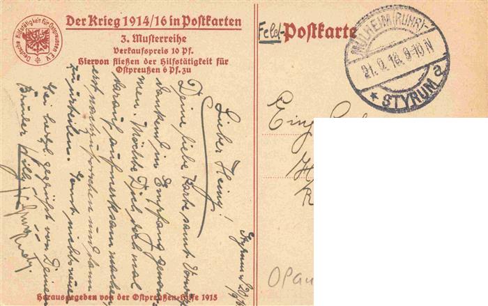 73975348 old postcard Stallupoenen Ebenrode Nesterow Oblast Kaliningrad RU Konditorei Rohde in Truemmern Serie Der Krieg 1914/16 in Postkarten 3. Musterreihe Feldpost postalisch gelaufen Erhaltung siehe scans [FriedD77] KatCode: 11440