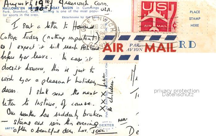 73131636 old postcard Stamford Connecticut Bootsanlegestelle postalisch gelaufen Erhaltung siehe scans [KathaD81] KatCode: 14140070000000