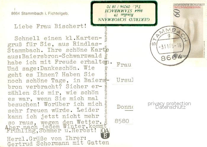 73673996 alte Postkarte Stammbach Turm Panorama Kirche Siedlung Freibad Ortsansicht postalisch gelaufen Erhaltung siehe scans [WerneD78] KatCode: 11110009475175